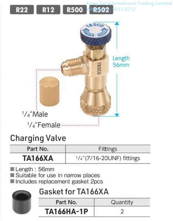 TASCO TA166XA 雪種安全閥 (R22,R12, R502, R500) 1/4" X 1/4" 56MM TA166HA-1P 墊片