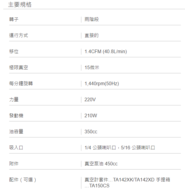 Tasco 兩級真空泵 (350cc, 15 microns) TA150XA-220