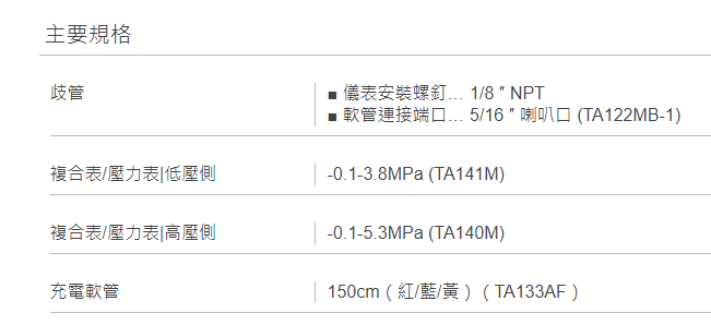 Tasco 迷你雪種壓力錶套裝(R32,R410A) TA122MB-2