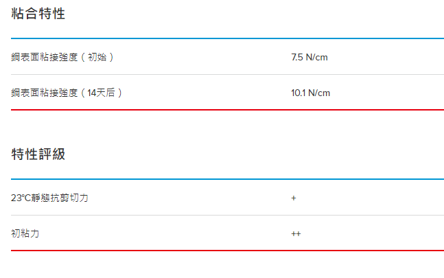 • 在各種泡棉,塑料和金屬表面都能保持優秀粘接力